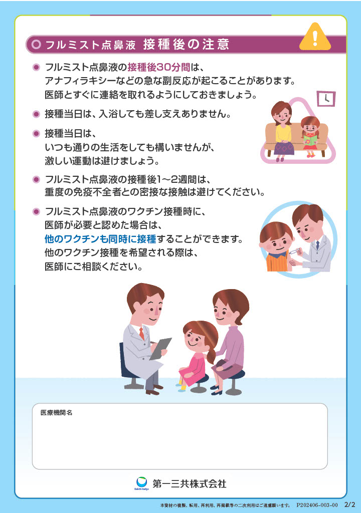 点鼻のインフルエンザワクチン(フルミスト)は在庫に限りがある為予約制となっております。